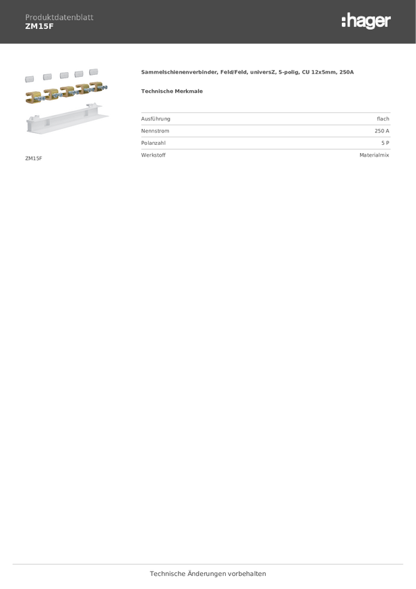 Hager ZM15F Złącza szyn zbiorczych wielobarwny 5 styków 250 A 1 szt.