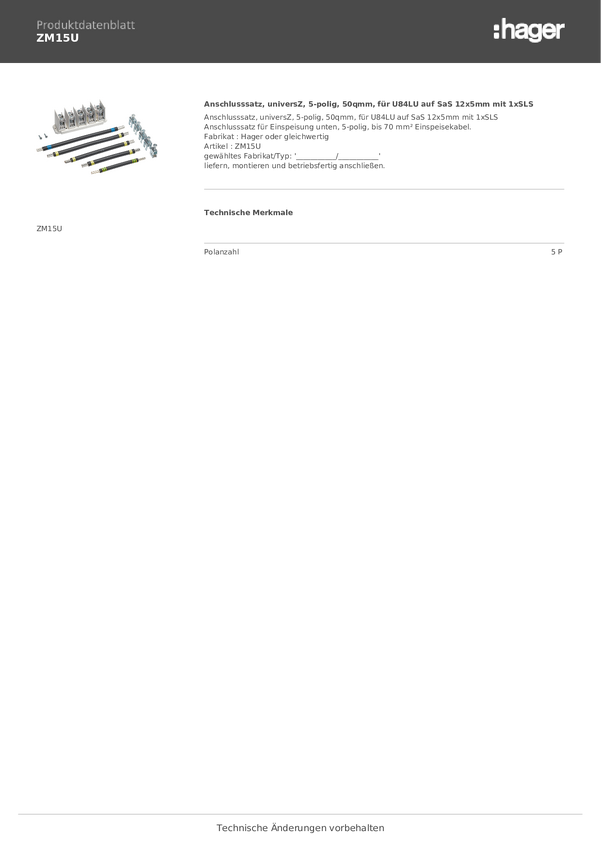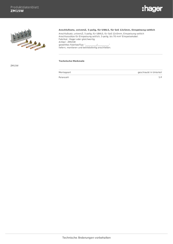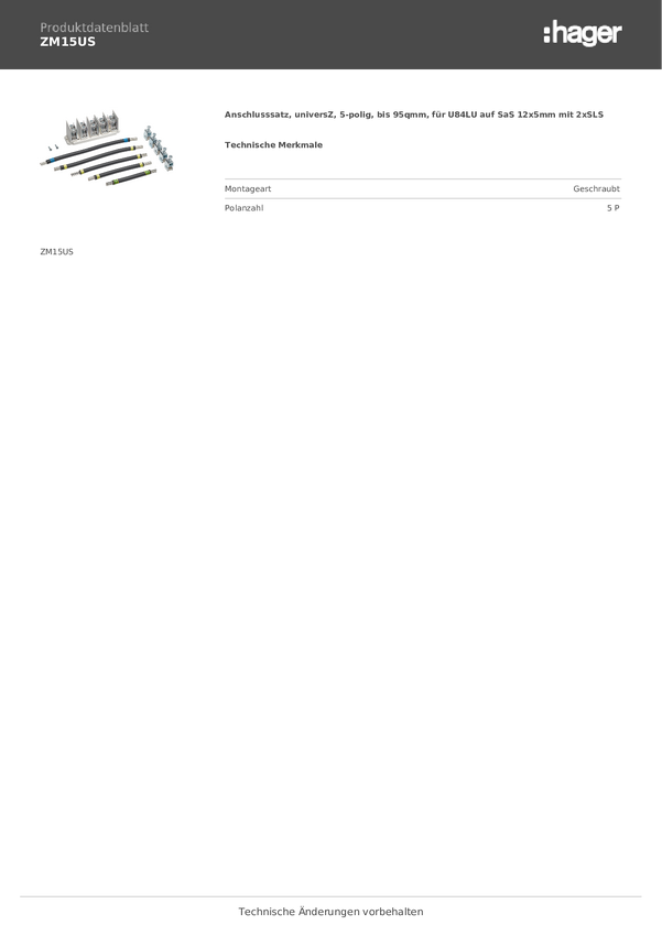 Hager ZM15US Zestaw przyłączeniowy wielobarwny 5 styków 1 szt.