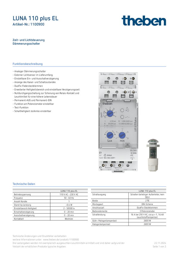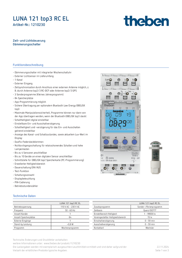 Theben LUNA 110 AL 1104100 Wyłącznik zmierzchowy