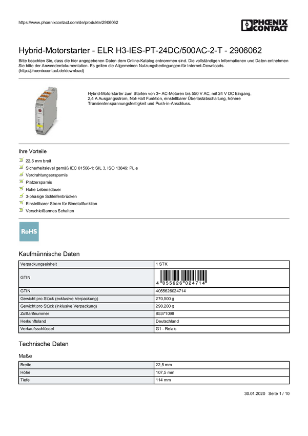 Phoenix Contact ELR H3-IES-PT/500AC-3-IOL 2908671 Rozrusznik silnika 24 V/DC Natężenie znamionowe 3 A