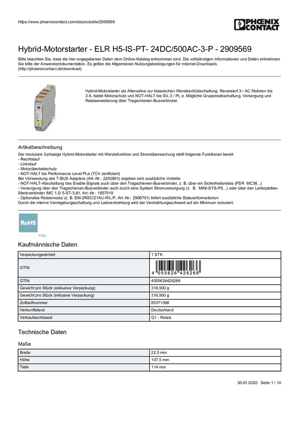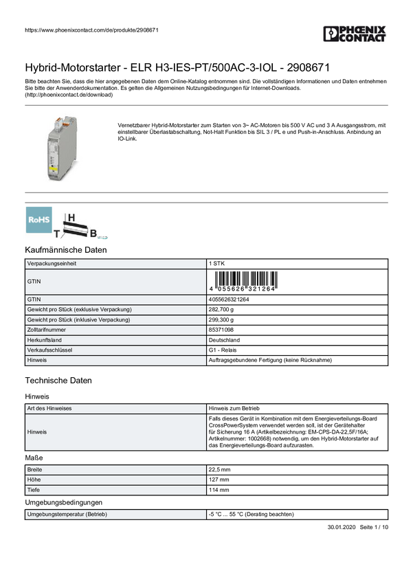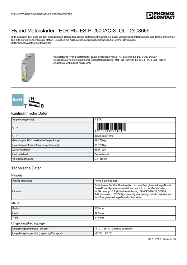 Phoenix Contact ELR H5-IES-PT/500AC-3-IOL 2908669 Rozrusznik silnika 24 V/DC Natężenie znamionowe 3 A