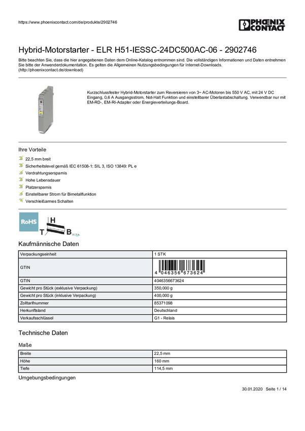 Phoenix Contact ELR H51-IESSC-24DC500AC-06 2902746 Rozrusznik silnika 24 V/DC Natężenie znamionowe 0.6 A