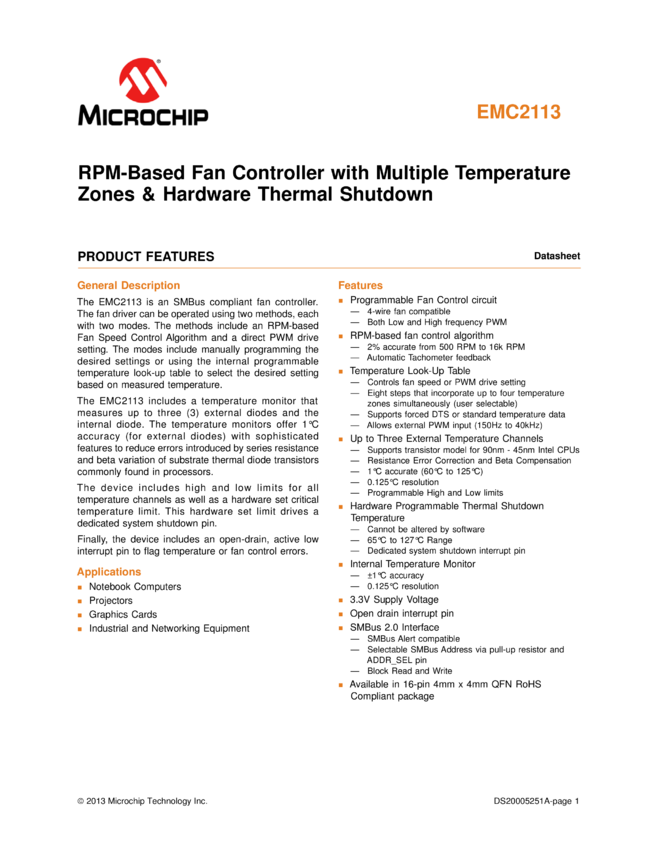 EMC2113 RPH-Based Fan Controller with Multiple Temperature Zones & Hardware Ther (11/19/2013)