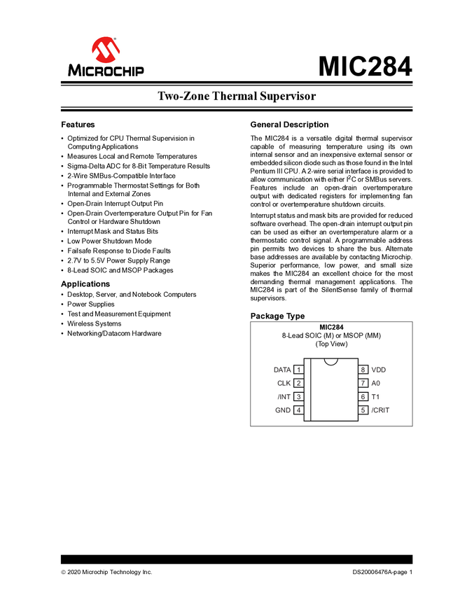 MIC284 - Two-Zone Thermal Supervisor (11/09/2015)