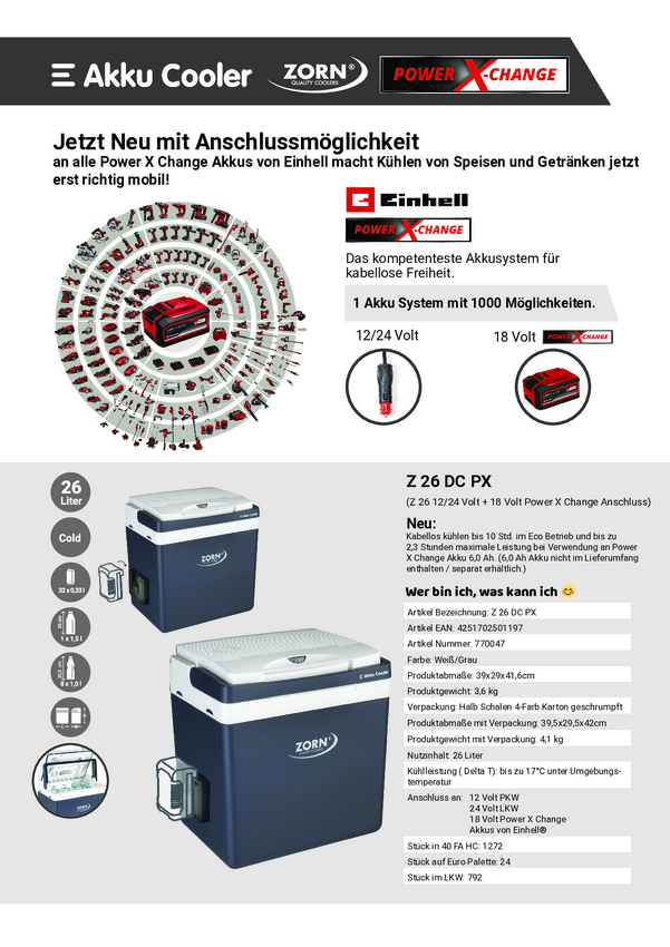 ZORN Z 26 DC PX 12/24V Lodówka na baterie termoelektryczna 12 V, 18 V, 24 V szary 25 l Funkcja chłodzenia: Delta T: do 1