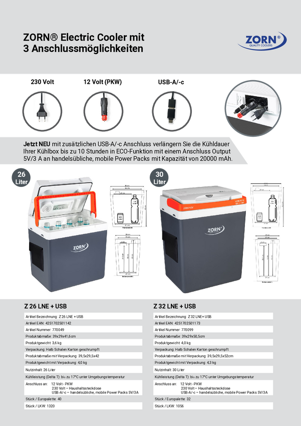 ZORN Z 32 LNE Lodówka z funkcją grzania EEK: E (A - G) termoelektryczna 12 V, 230 V/AC biało-czarny, pomarańczowy 30 l -