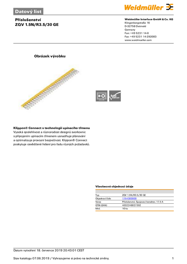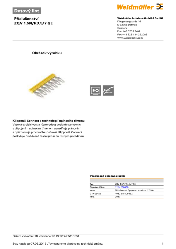 Łącznik krzyżowy Weidmüller ZQV 1.5N/R3.5/7 GE 1754260000, 20 szt.