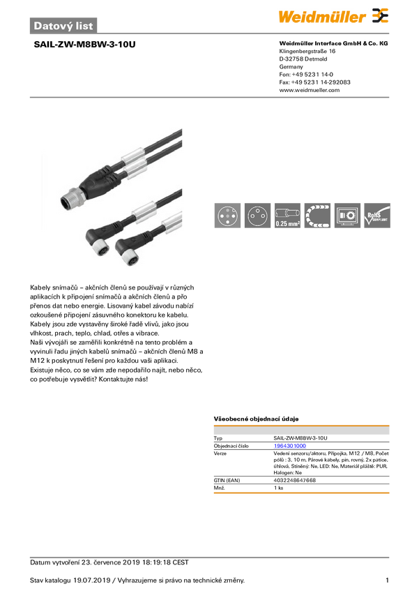 Przewód połączeniowy Weidmüller SAIL-ZW-3-3.0U 1964310300 1 szt.