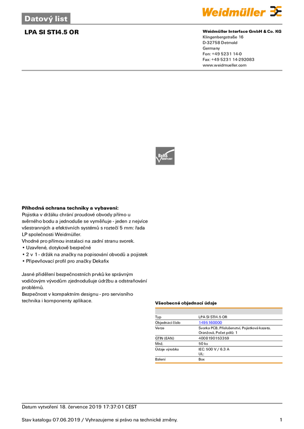 Weidmüller 1495060000 Zworka grzebieniowa Ilość styków 1 pomarańczowy 50 szt.