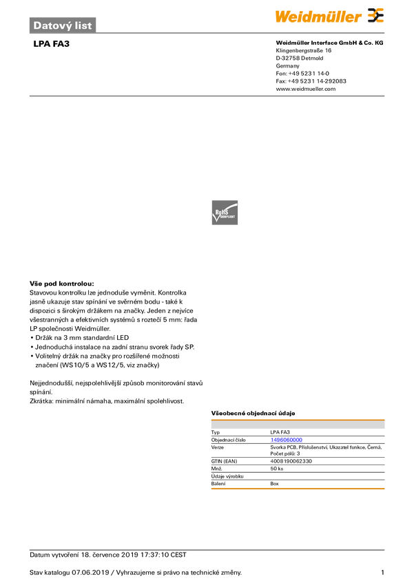 Weidmüller 1472300000 Zworka grzebieniowa Ilość styków 3 50 szt.