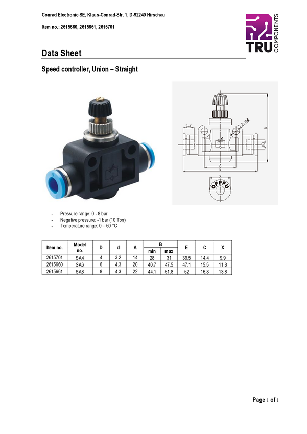 Zawór zwrotny TRU COMPONENTS TSA6 TC-10462796, 8 bar (max)