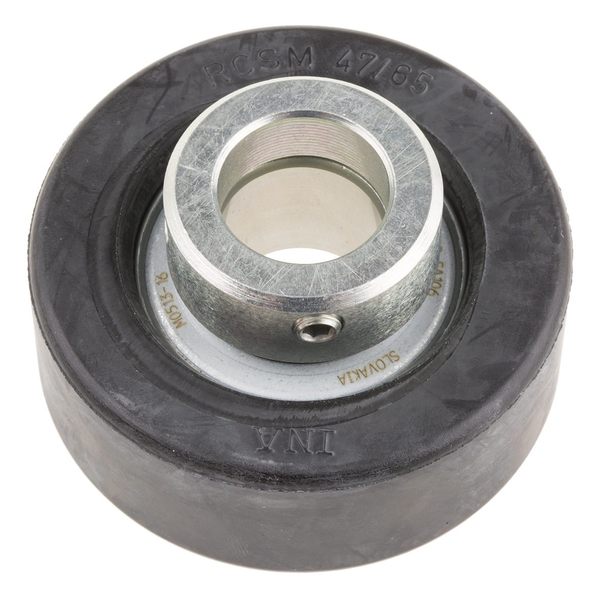 Ina z podpory promieniowej Schaefferer łożyska kulkowe z gumowymi tulejami przekładniowymi znajdują się na wale przy użyciu mimośrodowego kołnierza ustalającego.