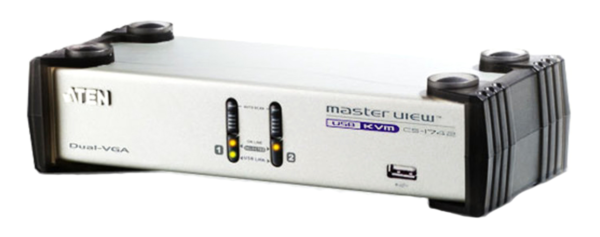 Aten CS1742 2-portowy przełącznik KVM integruje funkcje podwójnego wyjścia sygnału wideo i przełączników KVM USB.
