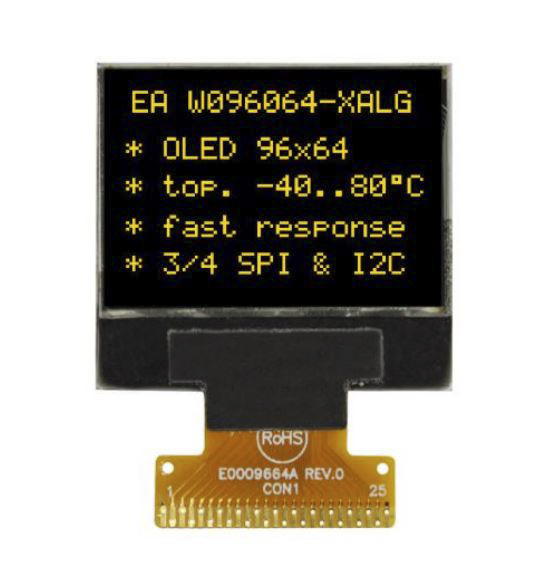 Nowe wyświetlacze OLED firmy ELECTRONIC ASSEMBLY dostępne w kształcie okrągłym, kwadratowym oraz w niezwykle małej wersji 29 x 9 mm pozwalają w pełni wykorzystać swoje zalety w kompaktowych urządzeniach przenośnych: energooszczędność, kompaktowe wymiary oraz niezwykle szeroki zakres temperatur pracy -40.
