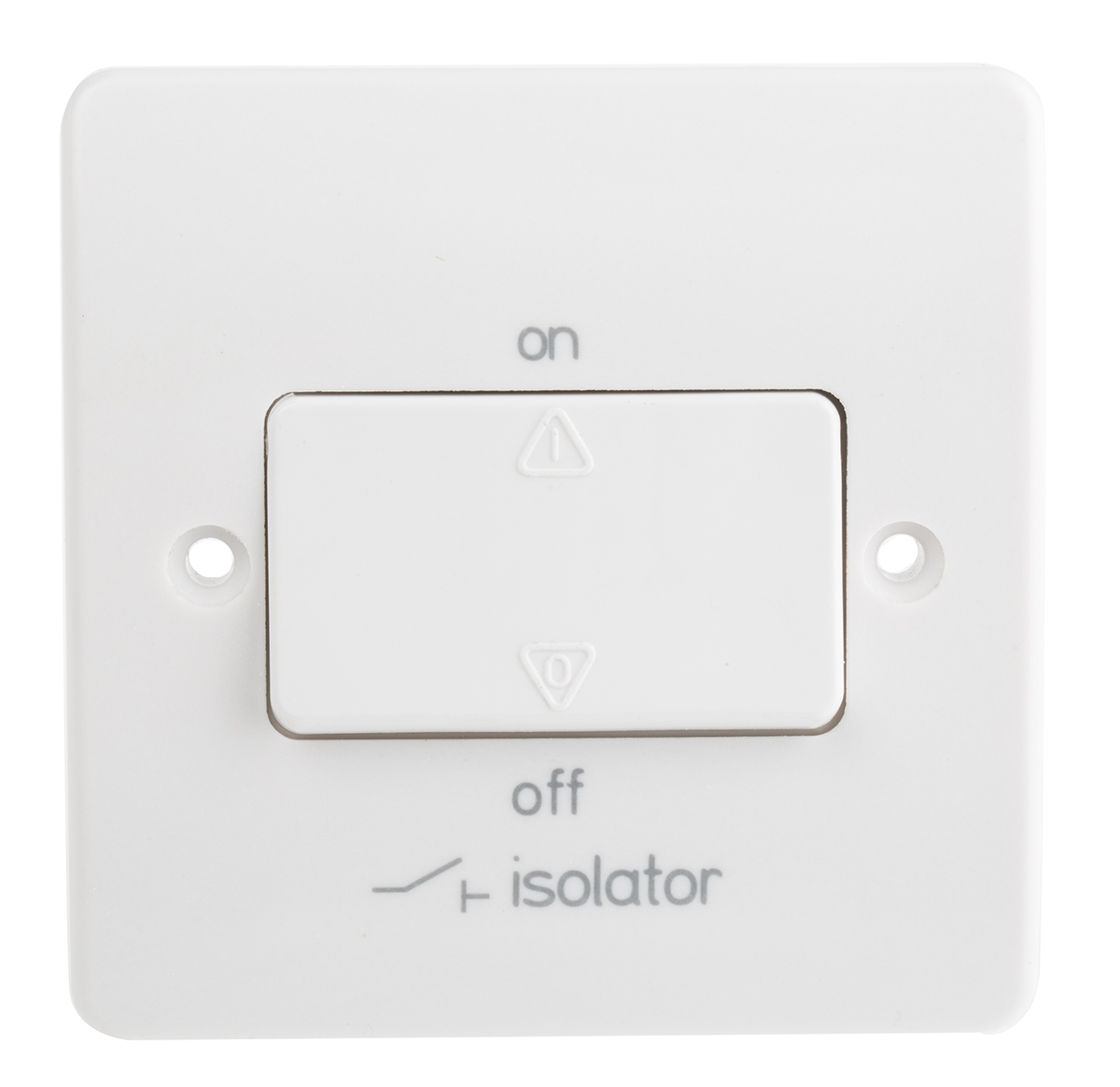 Biały, odlewany trzybiegunowy przełącznik odłącznika wentylatora MK Electric Logic Plus z przełącznikiem 10A Switchlock i Padlock zapewnia prostą i bezpieczną metodę izolowania mechanicznych wentylatorów.