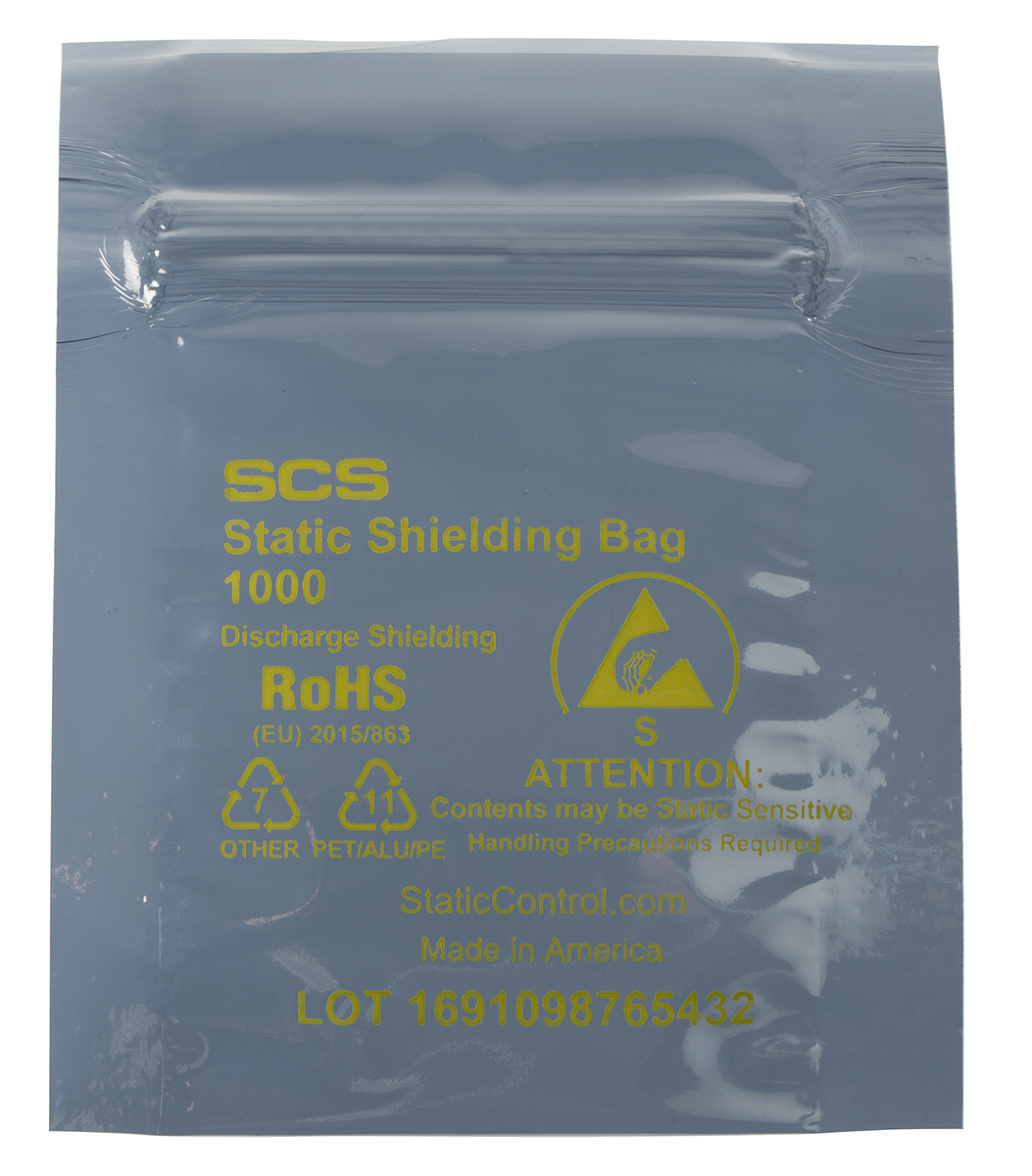 Na SCS 51mm x 76mm x 0.0028w grubym 2.8mil (osłona) torebka jest wykonana z metalu w postaci folii laminowanych i wyładowanie elektrostatyczne elementów.