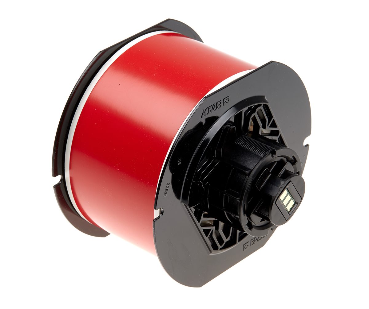 Taśma drukarki Brady Red label jest folią winylową pokrytą trwałym, czułym na nacisk klejem akrylowym.