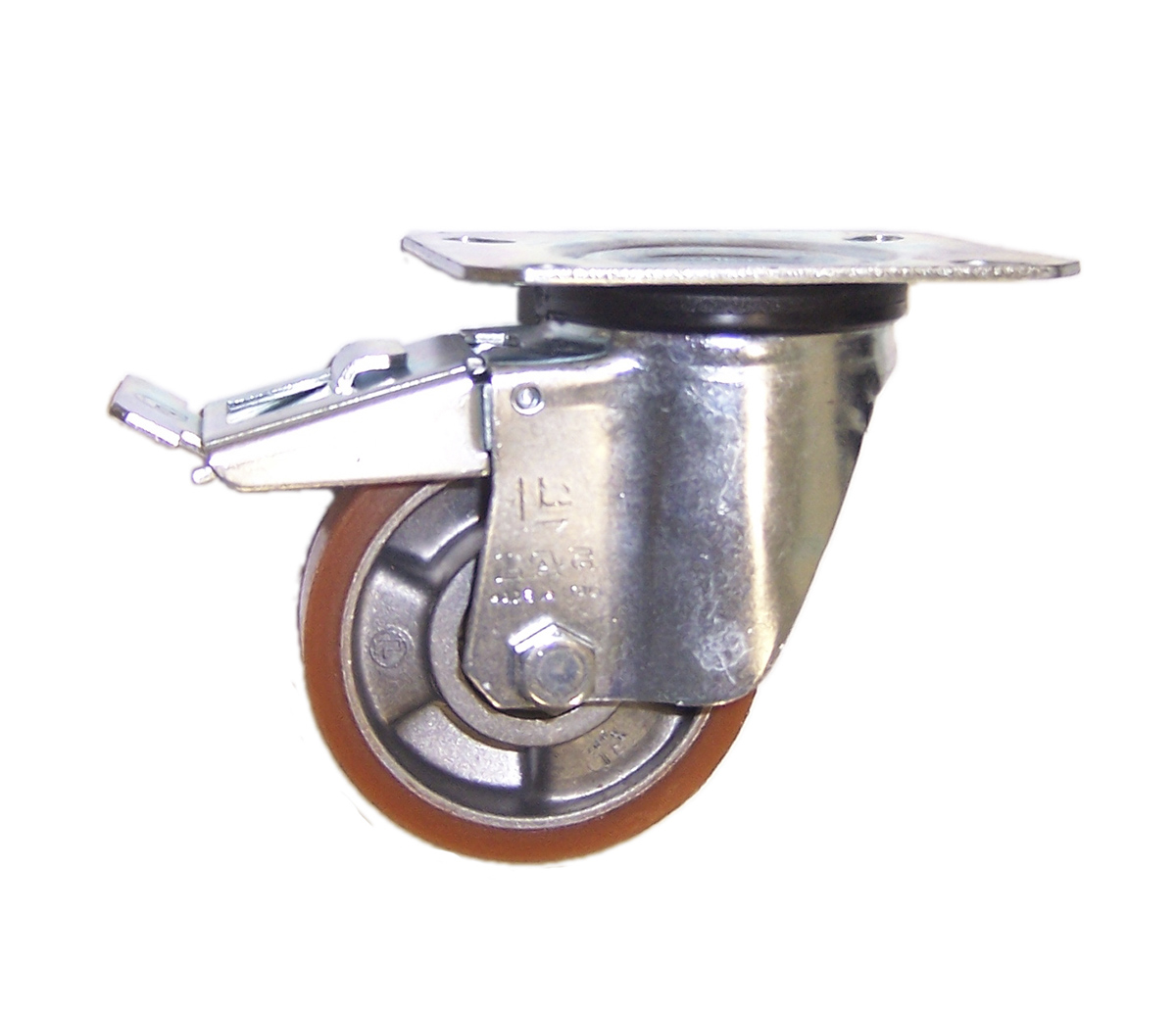 Koła z powłoką poliuretanową 95 Sh.A na piaście aluminiowej. Dostępne z łożyskami kulkowymi lub rolkowymi.