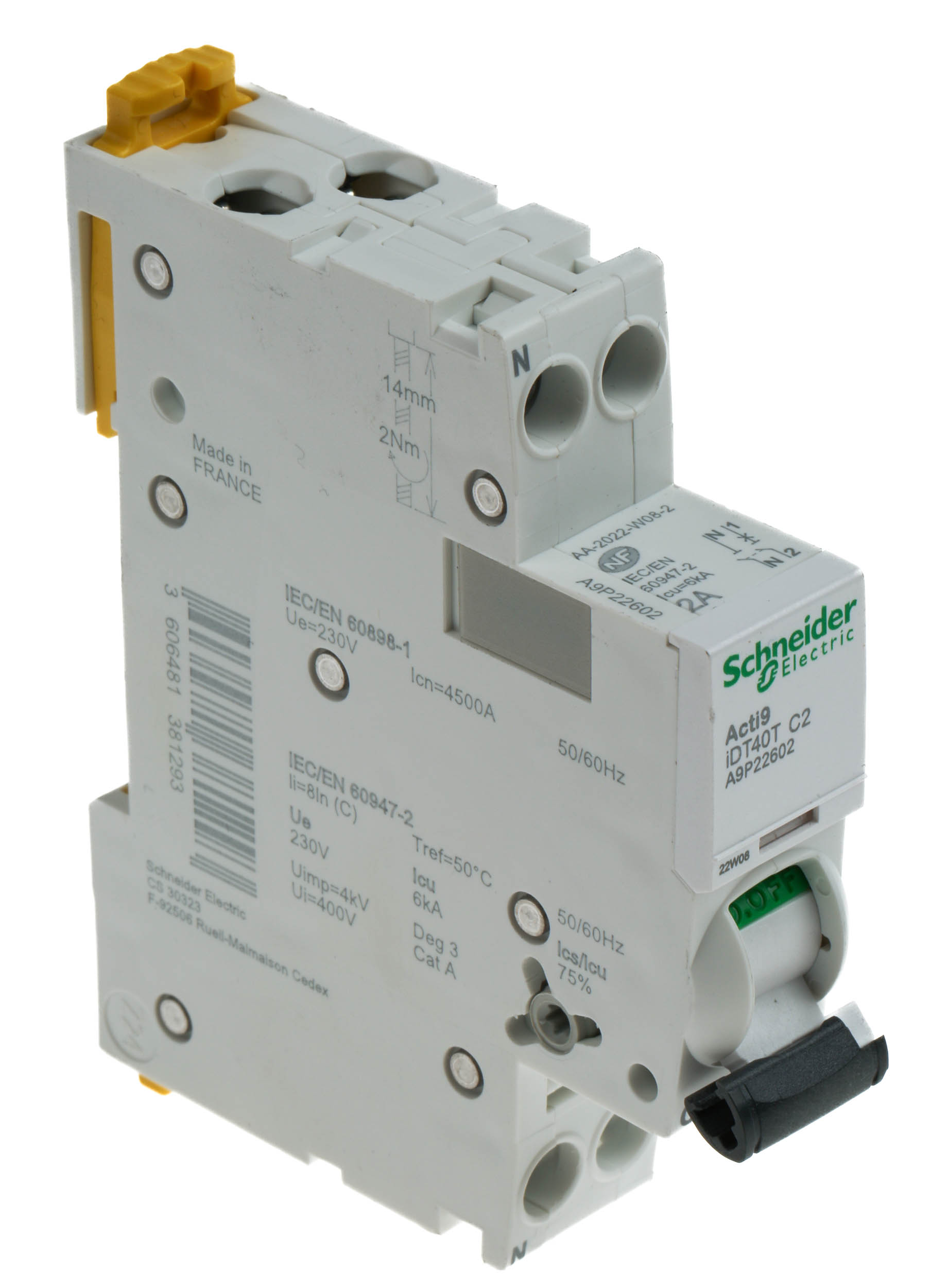 Wyłącznik nadprądowy MCB, Typ C, 1+N, 2A, 230V, na szynę DIN, Schneider Electric IDT40T, Acti9 iDT40T