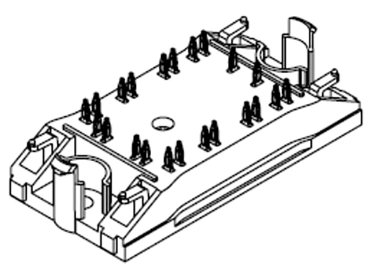 NXH100B120H3Q0 to moduł zasilający z podwójnym etapem podniesienia napięcia zawierający dwa układy IGBT 50A/1200 V, dwie diody SIC 20A/1200 V i dwie diody zapobiegające połączeniu równoległemu 25 A/1600 V dla IGBT.