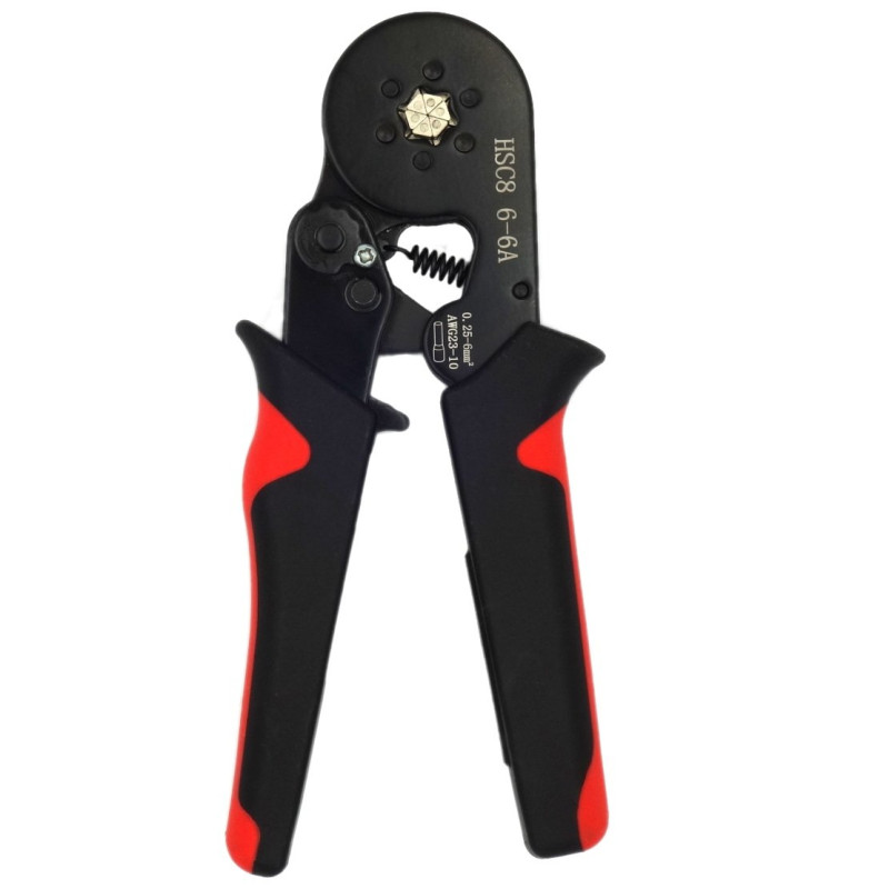 Cechy: - model: HSC8 6-6 - wysoka jakość wykonania - sześciokątny system zaciskania - trzystopniowa blokada szczęk - możliwość regulacji siły docisku - ergonomiczna rękojeść - pozwala na zaciskanie tulejek izolowanych oraz nieizolowanych w rozmiarach 0,25-6 mm2 (AWG 23-10) - do zaciskania tulejek pojedynczych i podwójnych
