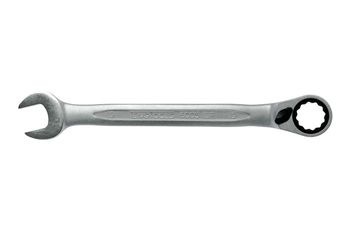 Klucz płasko-oczkowy Teng Tools, metryczny klucz płasko-oczkowy, który jest kluczem oczkowym i kluczem płaskim, w połączeniu z otworem tego samego rozmiaru na każdym końcu Jest on dostępny w wersji z uchwytem biodrowym firmy Teng Tools na końcu pierścienia, który umożliwia kontakt z płaską stroną mocowania w celu zmniejszenia uszkodzeń i stosowania na zaokrąglonych nakrętkach i śrubach.