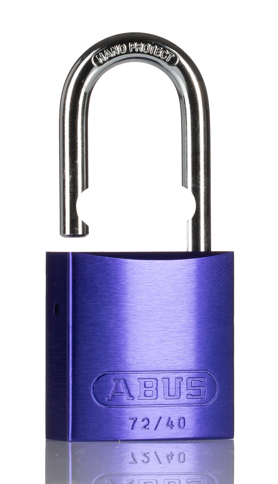 72/40 Lilac KA TT04072 Blokada aluminiowa lilililiowa serii ABUS 72 ma szerokość korpusu 38,5 mm i szekle ze stali hartowanej 6mm.