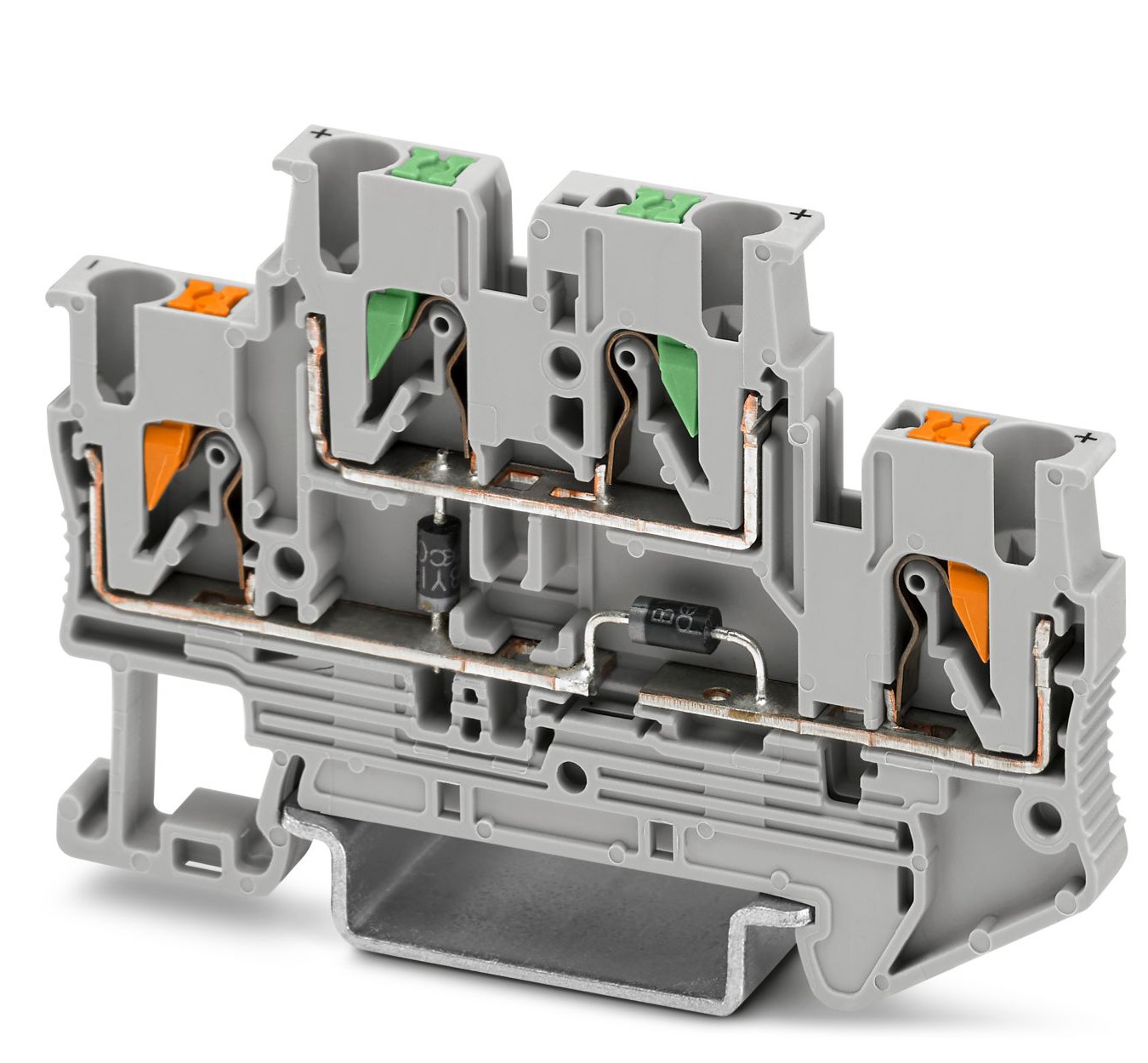 Blok Phoenix Component Terminal, ze zintegrowaną diodą 1N4007, maksymalny prąd jest określany przez diodę.
