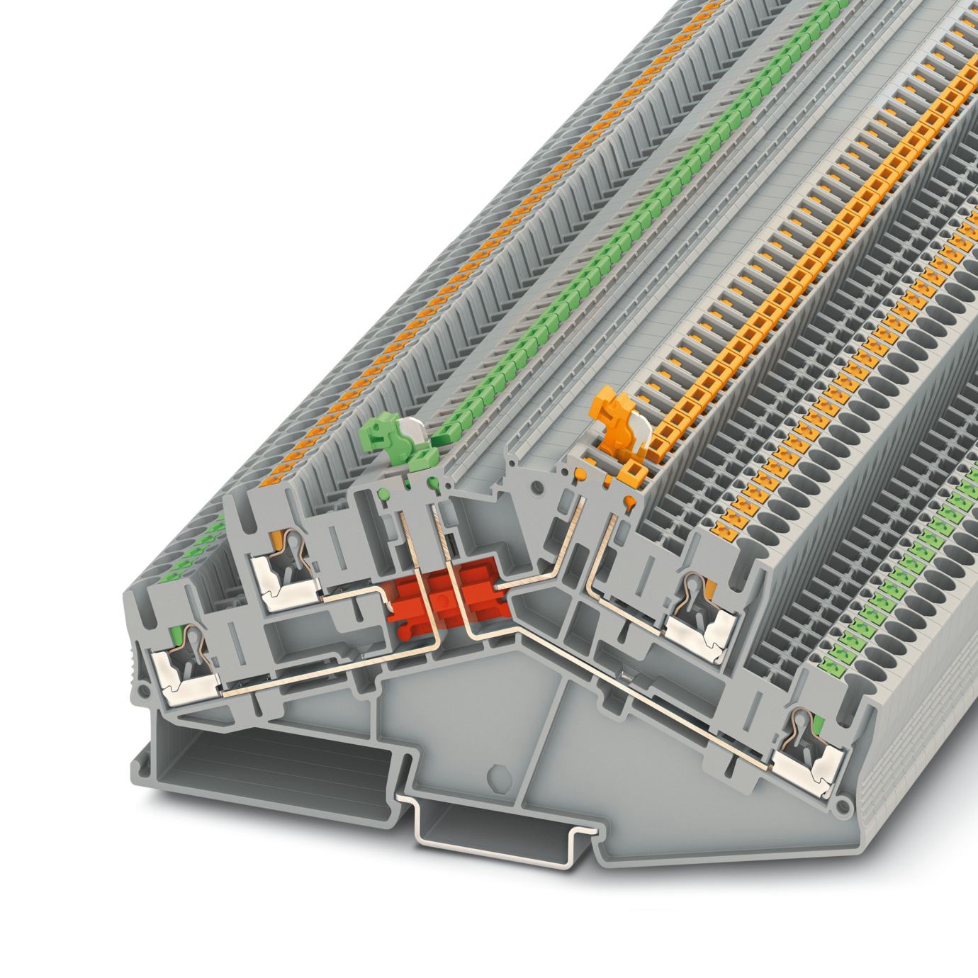 Blok Terminal rozłączania noża Phoenix, podwójny poziom z wygiętym konturem i dwoma nożami rozłączania.