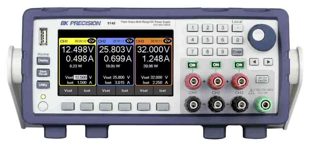 Wielozakresowy zasilacz prądu stałego z potrójnym wyjściem serii BK Precision BK9140 łączy w sobie wiodącą w branży gęstość mocy i wydajność z szerokim zestawem funkcji w kompaktowej obudowie 2U.