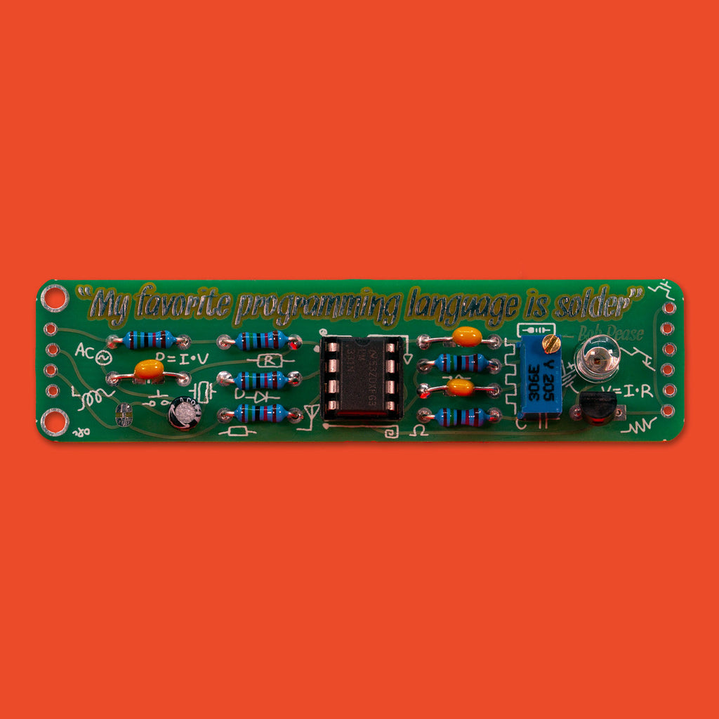 A tribute to legendary analogue circuit designer Bob Pease. This soldering kit from Boldport is an LED flasher circuit built around the LM331 voltage-to-frequency converter chip.