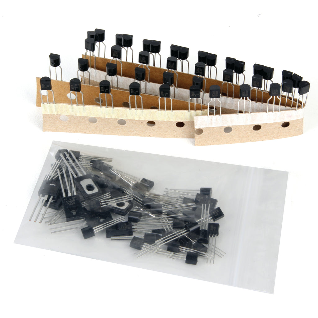 Control your electronics in style with these mixed transistors. This handy set of 100 through-hole transistors covers a wide range of uses.