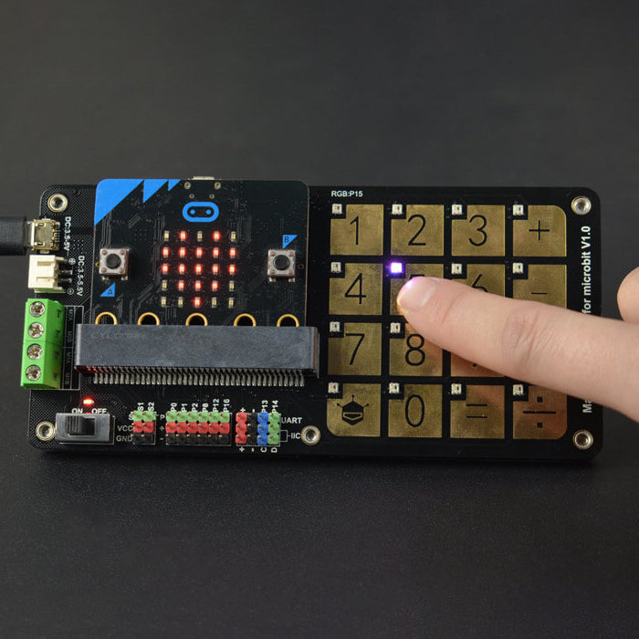 Easy to use, and suitable for a wide range of applications. 16 programmable touch keys with RGB LEDs offer rich functionality and flexible input and output for your micro:bit
