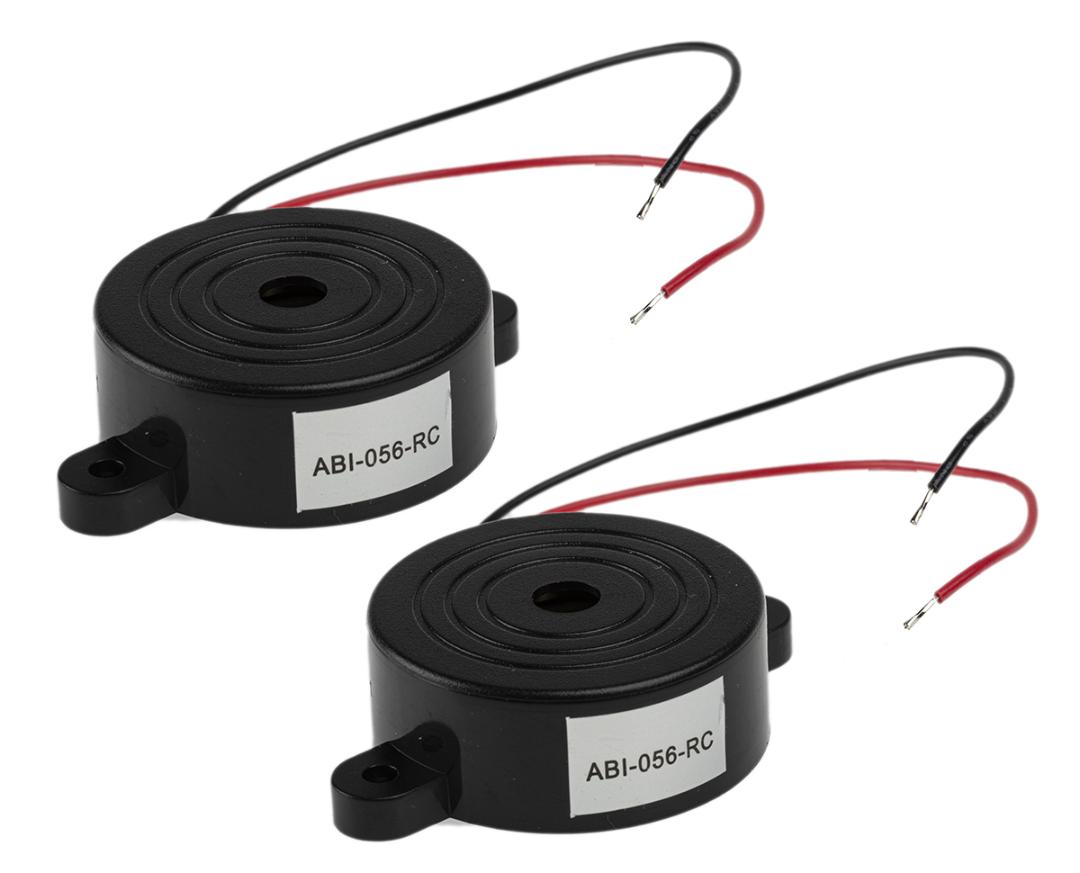 RS PRO 90 dB, brzęczyk piezoelektryczny na wsporniku przewodu odprowadzeń jest wskaźnikiem z wewnętrznym obwodem napędu.