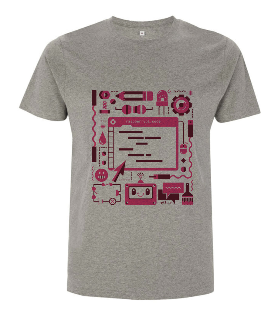 Be the coolest cat in the code club with this eye-catching official Raspberry Pi t-shirt, showcasing components, circuitry and other crafty coding goodies.