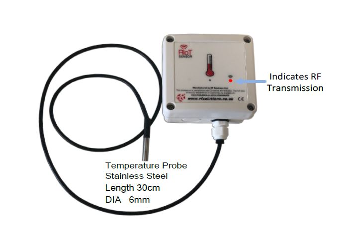 Czujnik optyczny RF Solutions mierzy temperaturę i przesyła sygnał RF w ustawionym przedziale czasu. Jest on używany w połączeniu z MINIPIASTĄ RIOT, który użytkownik może przeglądać pomiar temperatury na smartfonie/komputerze za pośrednictwem Internetu w dowolnym miejscu na świecie.