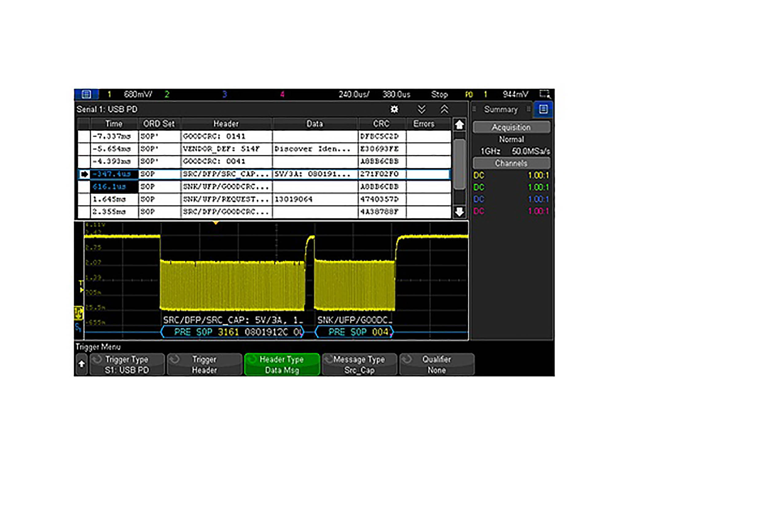 Oprogramowanie do oscyloskopów, Szeregowe Wyzw. I dekodowanie, InfinitiVision 4000 z serii X, 7.4