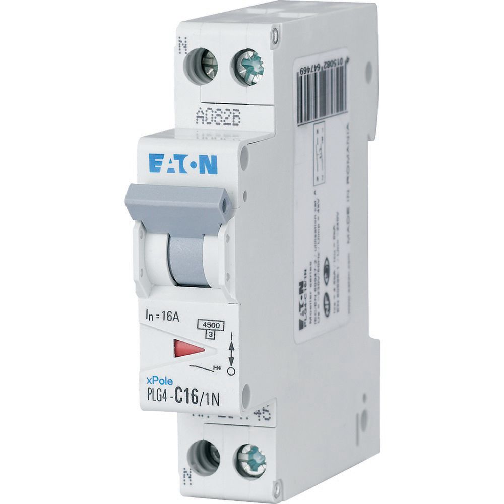 Wyłącznik nadprądowy MCB, Typ C, 1+N, 16A, 230V, na szynę DIN, Eaton PLG4-C16/1N