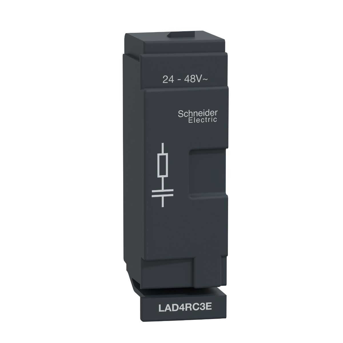 Moduł supresora Schneider Electric TeSys D, do styczników LC1D40A-D80A, LC1DT60A-DT80A. Mocowanie z przodu na zaczepie, całkowity rozmiar stycznika nie zmienia się.