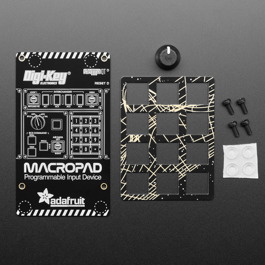Dress up your Adafruit Macropad with PaintYourDragon's fabulous decorative silkscreen enclosure and hardware kit.