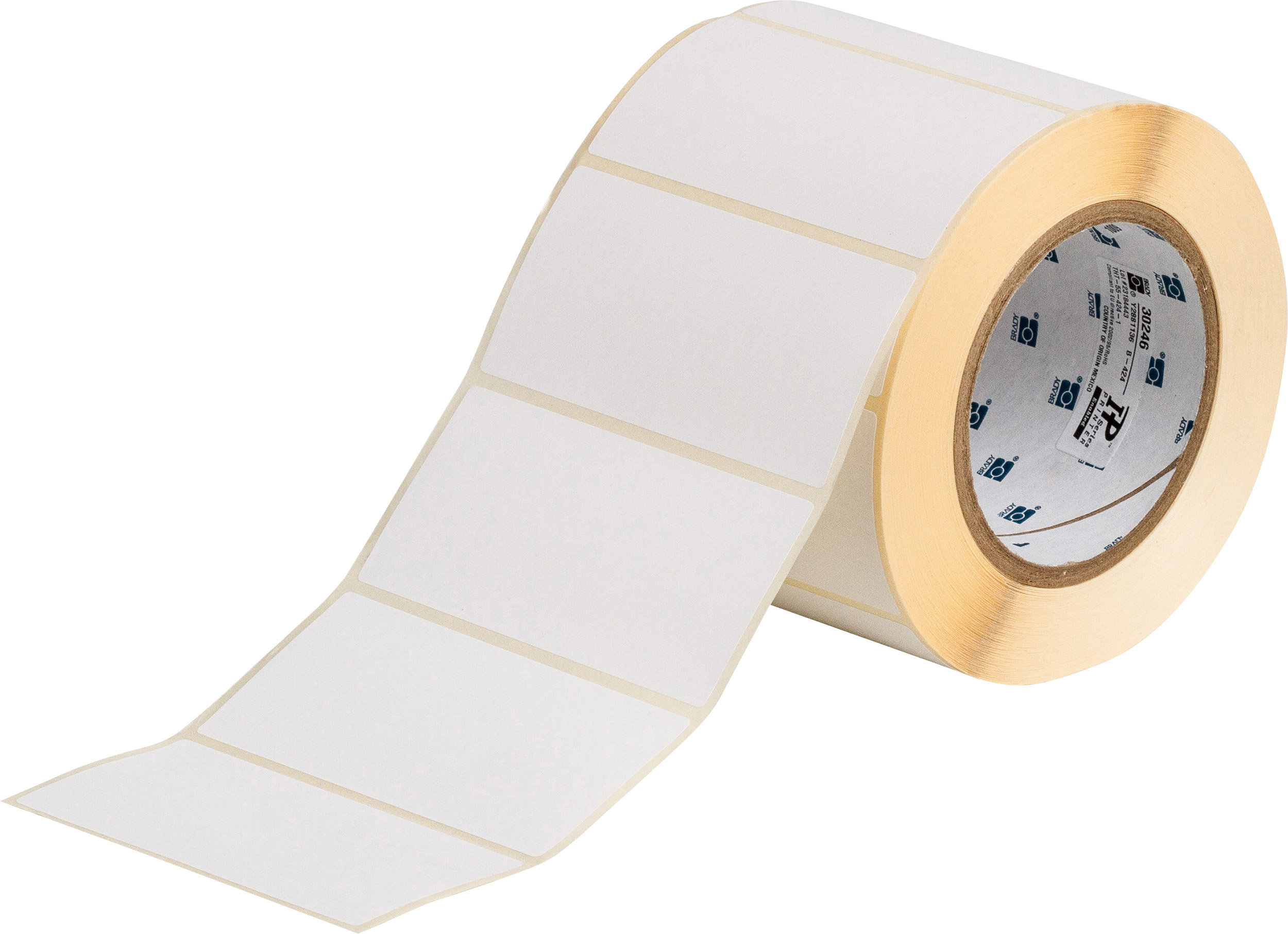 Etykiety papierowe Brady 76 mm z gumowym klejem stosowane w drukarkach termotransferowych. Dla gładkich powierzchni