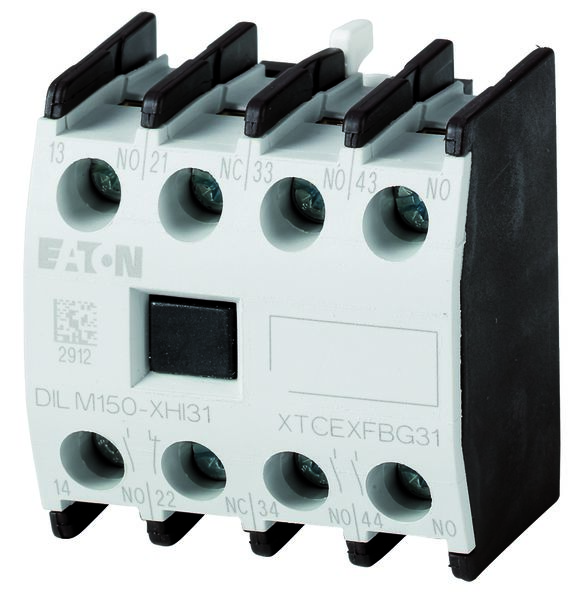 Pomocniczy moduł kontaktowy Eaton z zablokowanymi stykami przeciwbieżnymi używany do standardowych zastosowań, 4-biegunowy i z mocowaniem przednim.