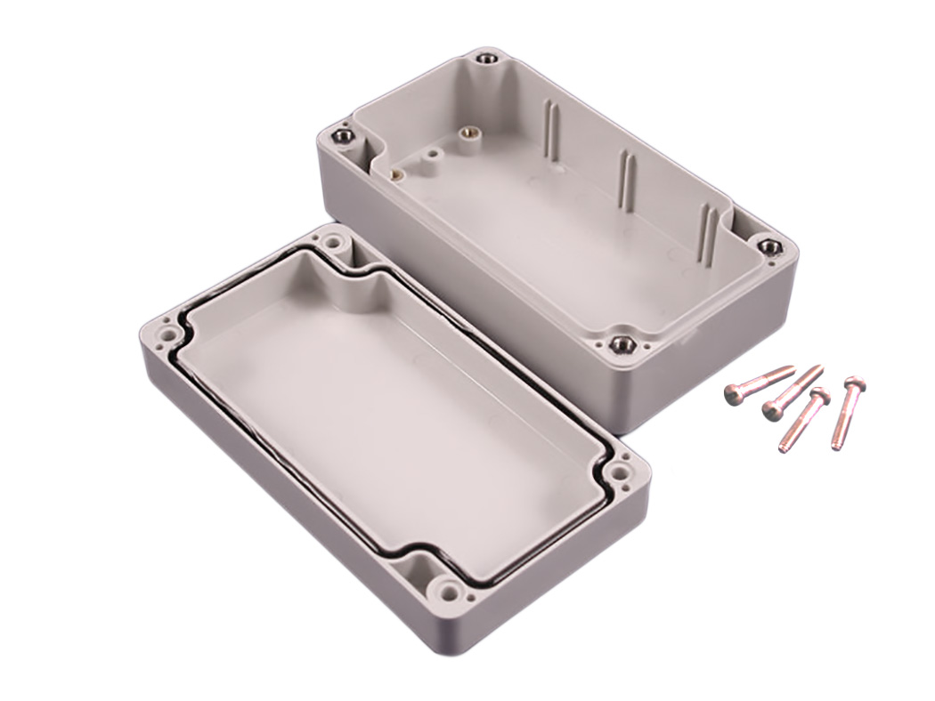 Wodoodporna obudowa ABS serii Hammond 1554, idealnie nadająca się do montażu płytek drukowanych lub elementów montowanych na szynie DIN (szczegółowe informacje można znaleźć w poniższych zdjęciach).