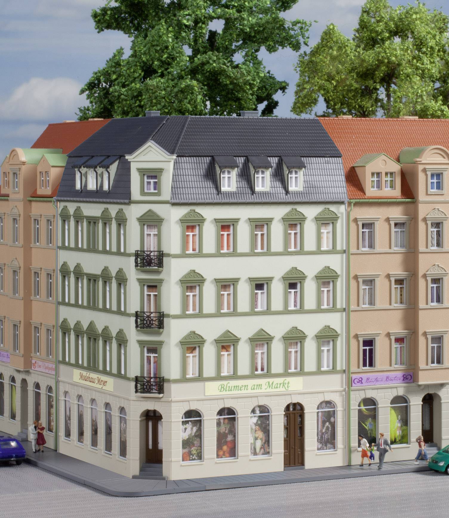 Na Ringstrasse trwała budowa! Atrakcyjny dom narożny, który można zaprojektować pod kątem 75°, 90° i 105°, jest gotowy do zamieszkania. Wszystkie części są w komplecie. Balustrady balkonów wykonane są z wytrzymałej tektury w technologii cięcia laserowego. Zestaw Auhagen.