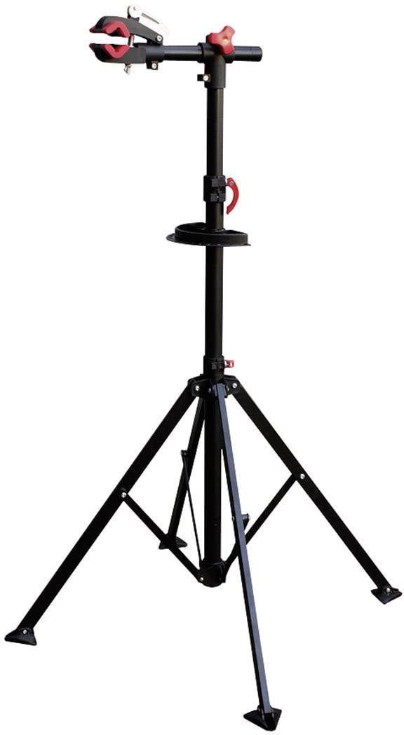 Nowoczesny stojak do rowerów jest wyposażony w uchwyt szybkiego mocowania dla rowerów, również tych z ramami Y i Oversize. Możliwość ustawienia i zamocowania roweru w zakresie 360°. Regulacja wysokości stojaka pozwala ustawić rower na wysokości oczu, co pozwala na ochronę pleców podczas pracy. Statyw odznacza się wysoką stabilnością i posiada magnetyczną podstawkę na narzędzia. Można na nim bezpośrednio testować hamulce, przerzutki, suporty etc. Podstawa z 4 nogami sprawia, że statyw nie zajmuje dużo miejsca. Można go łatwo złożyć, dzięki czemu nadaje się do przechowywania w garażu oraz piwnicy.