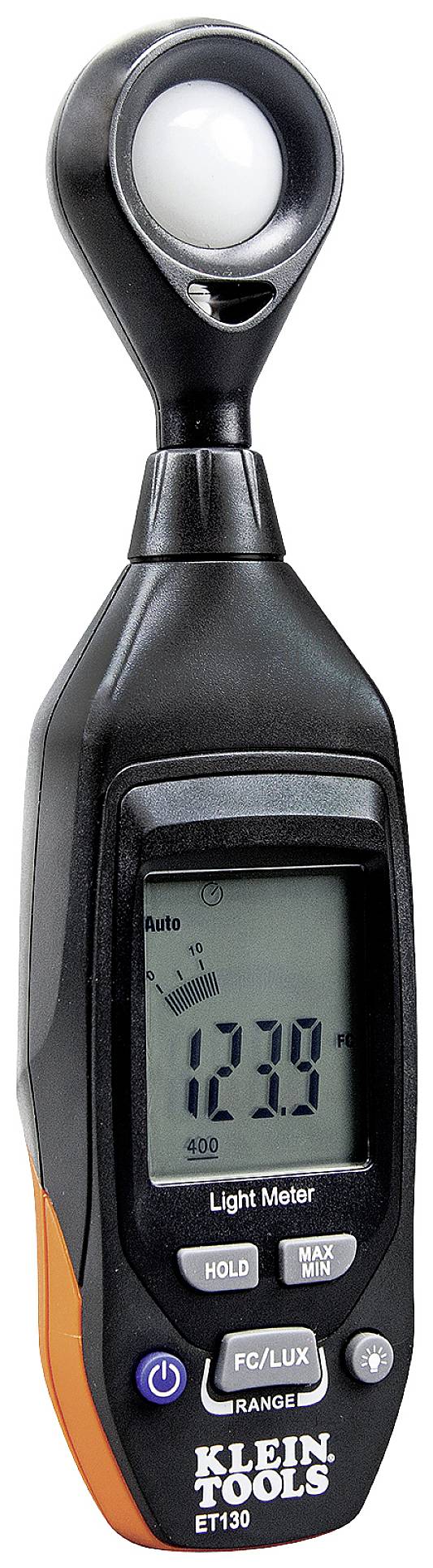 Klein Tools ET130 to łatwy w użyciu, precyzyjny miernik światła, który mierzy natężenie oświetlenia w świecach (FC) i luksach. Podświetlany wyświetlacz LCD z wykresem słupkowym pomaga w monitorowaniu poziomu światła i projektach modernizacyjnych.