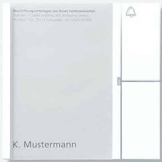 Moduł guzikowy z kieszenią na tabliczkę z nazwiskiem i 1 oddzielnym przyciskiem wywołania z symbolem dzwonka.