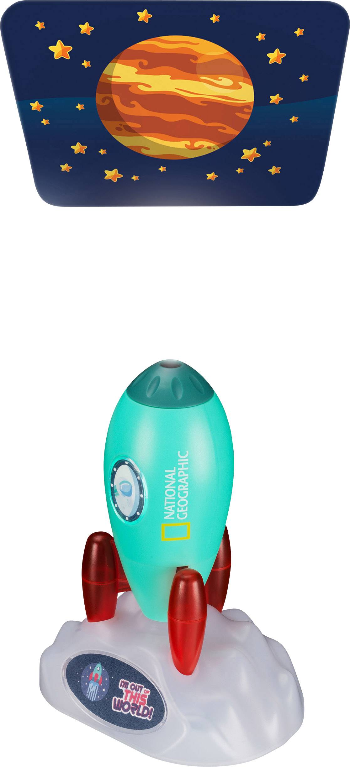 Projektor o designie rakiety kosmicznej rzutuje różne obrazy z przestrzeni kosmicznej na ścianę lub sufit. Oglądanie projekcji za pomocą dołączonych tarcz z 24 obrazami nie robi nudnego nudnego obrazu, ponieważ można je zmienić w ciągu kilku sekund. Dołączona podstawka w postaci chmury, na której można postawić rakietę kosmiczną, sprawia, że projektor staje się lampka nocna.