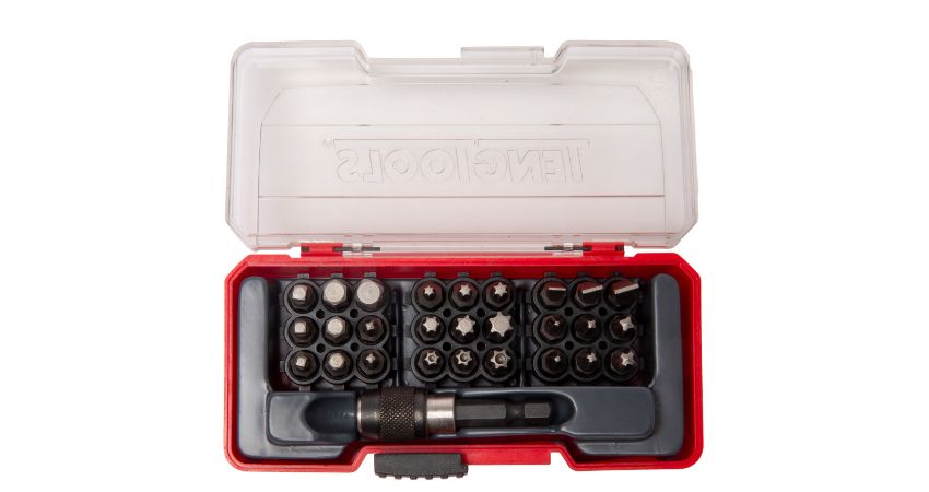 Zestaw końcówek Teng Tools z zaciskiem pasowym zawiera 26 najczęściej używanych końcówek 25 mm wraz z uchwytem końcówek szybkozłącznych i adapterem sześciokątnym 1/4 i jest dostarczany w unikalnej tacce TJ Teng Tools.