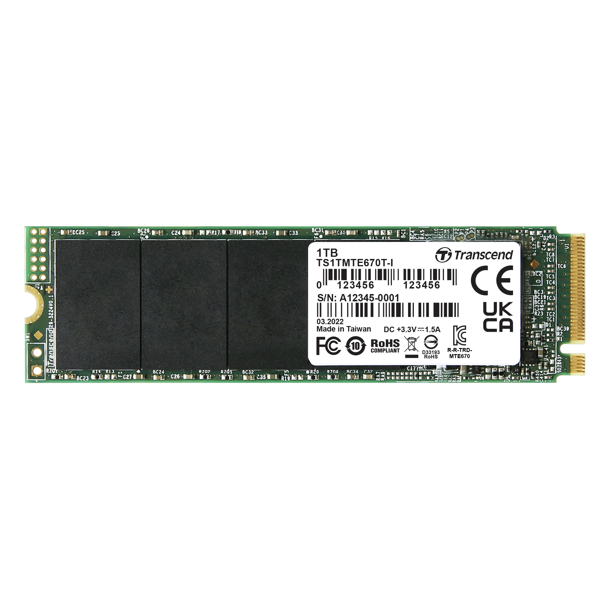 Dysk SSD MTE670T-I, 1 TB, NVMe PCIe Gen 3 x 4, wewnętrzny Tak, Transcend 3D TLC Nie -40 → +85°C